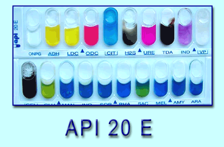 Es un sistema estandarizado para la identificación de Bacterias Gram -. Consiste en una plantilla con microtubos conteniendo medios de cultivo deshidratados que se reconstituyen al agregar una suspensión bacteriana. Permite la realización de 23 pruebas bioquímicas a partir de una única colonia bacteriana.