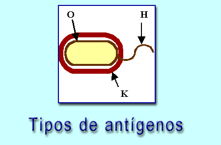 L os antígenos bacterianos pueden ser capsulares (K), somáticos (O) que corresponden al lipopolisacárido de la pared de los Gram negativos, flagelares (H), y los antisueros se identifican con esas letras y el número o letra del antígeno correspondiente.